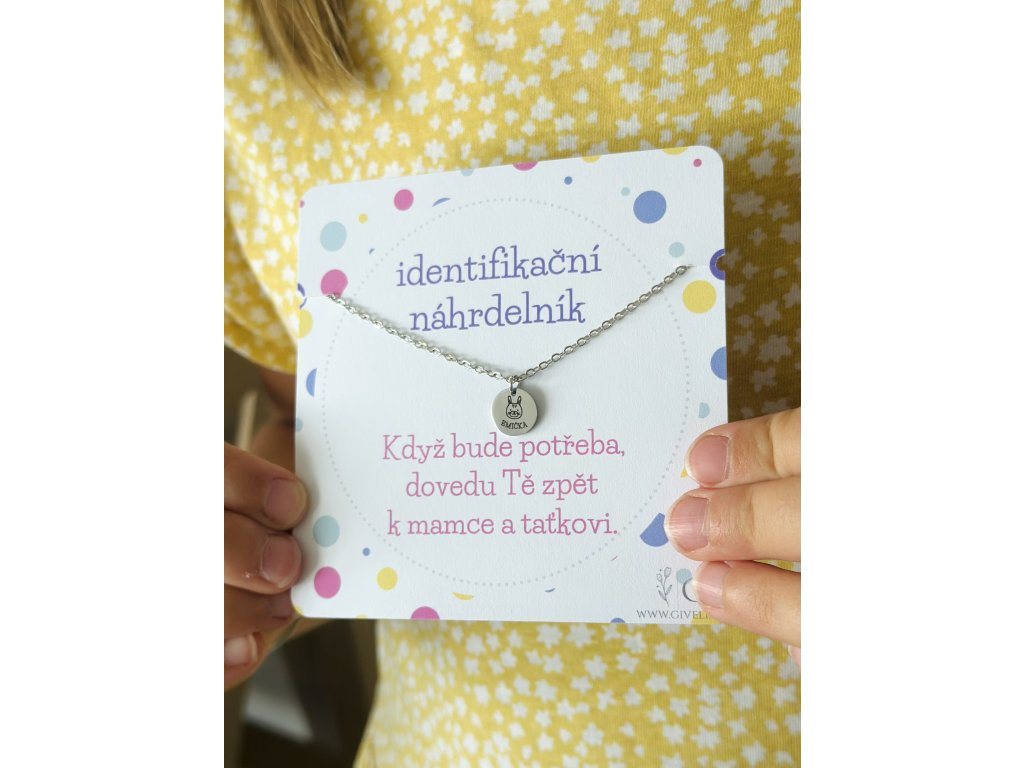 Bezpečí a styl v jednom! Tento dětský ocelový náhrdelník s malým přívěskem je ideální na výlety, do školky nebo školy, kamkoliv. Z přední strany je vygravírované jméno dítěte a jedno z 11 roztomilých zvířátek dle vlastního výběru. Na zadní straně je telefonní číslo na jednoho z rodičů s mezinárodní předvolbou +420, což v případě potřeby usnadní rychlý kontakt.