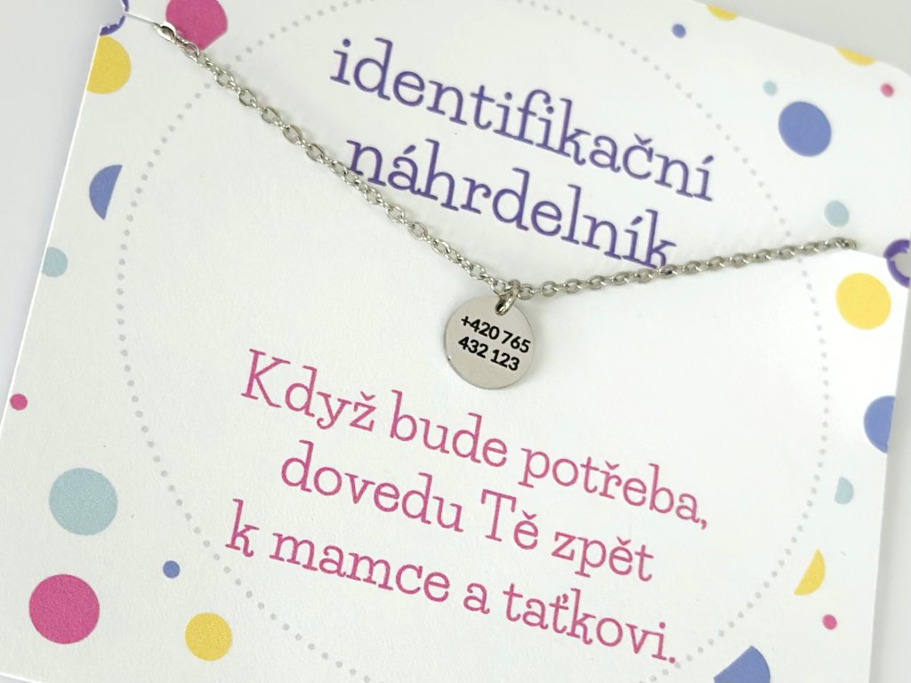 ID náhrdelník se jménem a telefonním číslem pro dívky