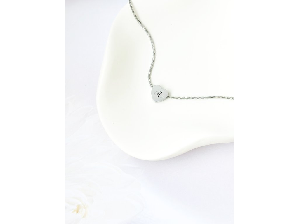 Jemný dámský náhrdelník - hádek se srdíčkovým korálkem z kvalitní chirurgické oceli. Na drobný minimalistický přívěsek vygravírujeme písmenko podle vašeho přání – buď psacím, nebo tiskacím písmem a je možné gravírovat písmenko na jednu nebo i druhou stranu!