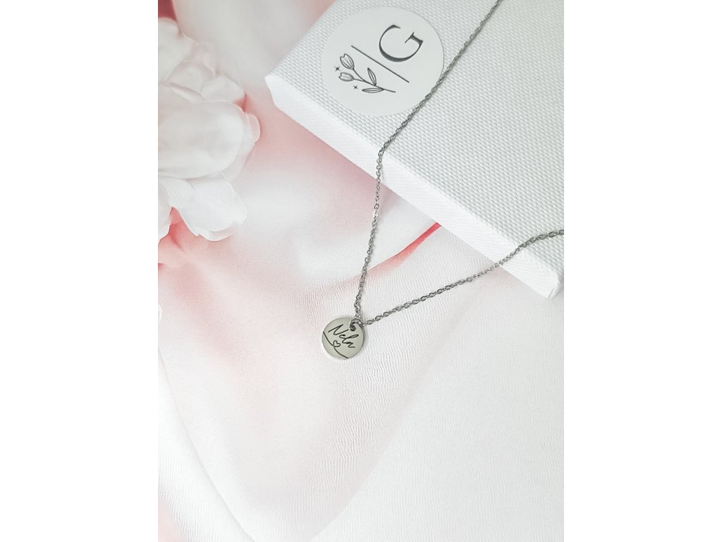 Ocelový přívěsek s gravírovaným jménem a srdíčkem. Ideální dárek pro maminku, babičku nebo pro sebe. Jméno k vygravírování vložte zde do poznámky.