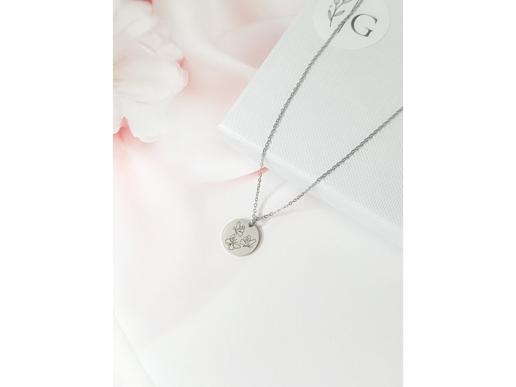 Personalizovaný ocelový náhrdelník s přívěskem s gravírovanými motýlky-